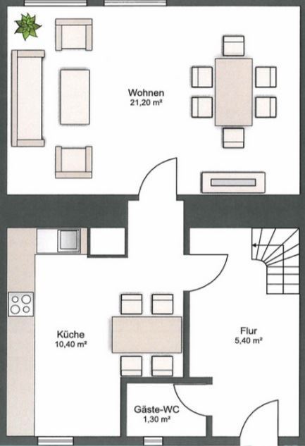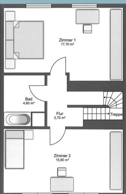 • Einen Flur, der die Räume miteinander verbindet